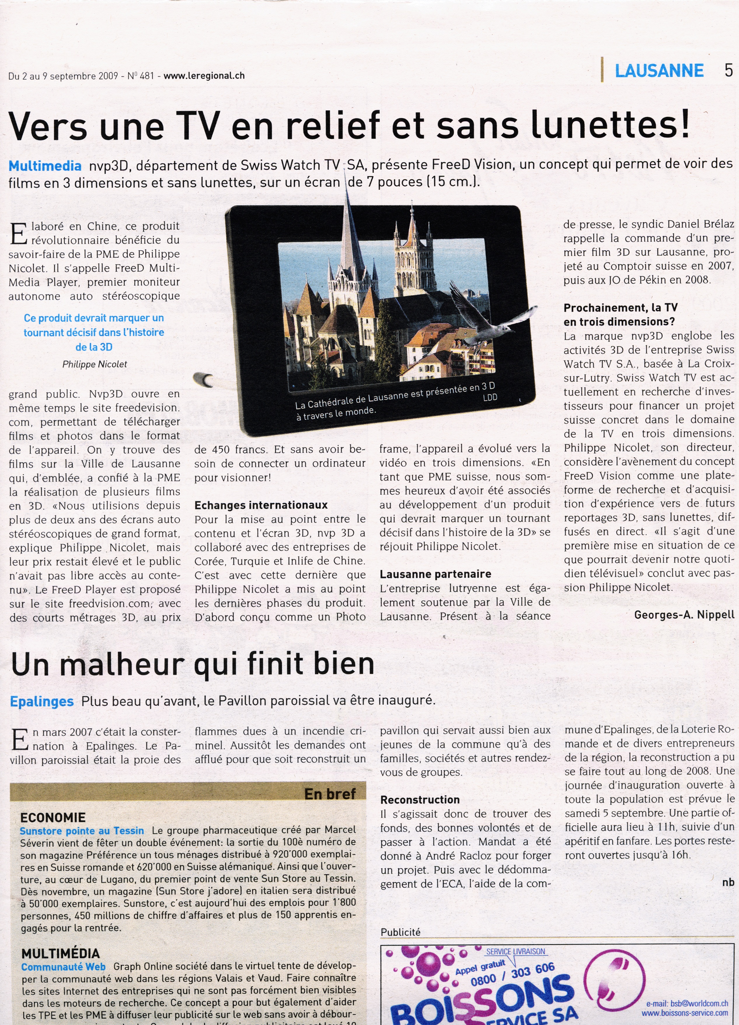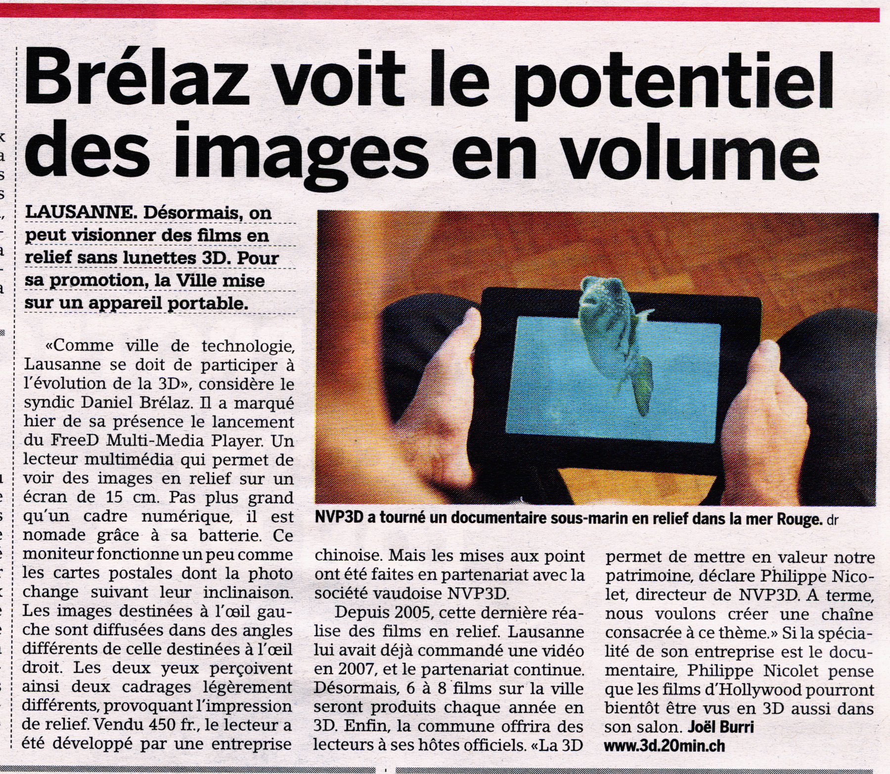 Conférence de presse FreeD à LausanneConférence de press NVP3D, en 2009, pour le nouveau FreeD, au Beau Rivage Palace à Lausanne, avec Daniel Brélaz, syndic de Lausanne et Philippe Nicolet, directeur de NVP3D.